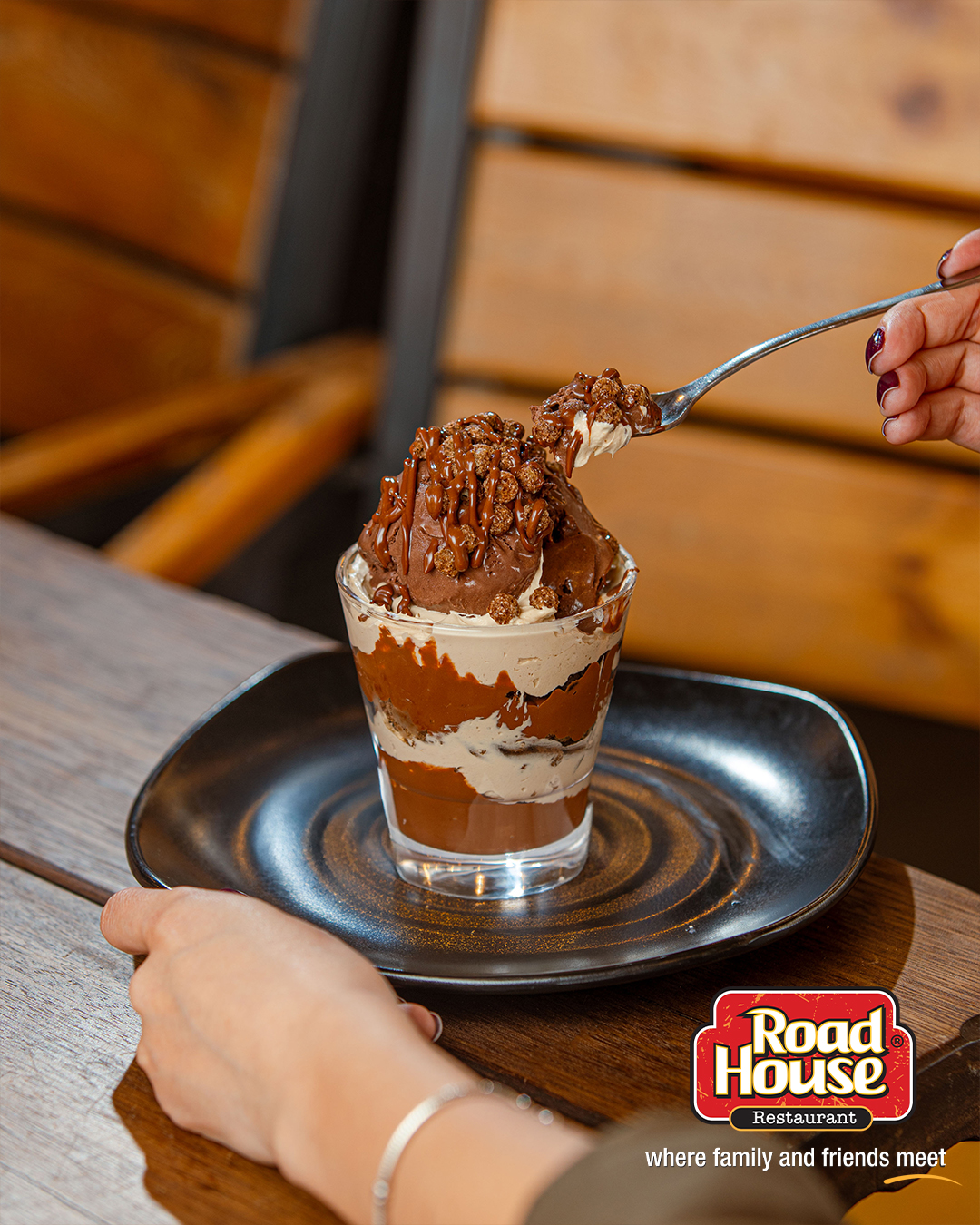 طبقات من بوظة شوكولا, صوص شوكولا, كريمة وكورن فليكس
