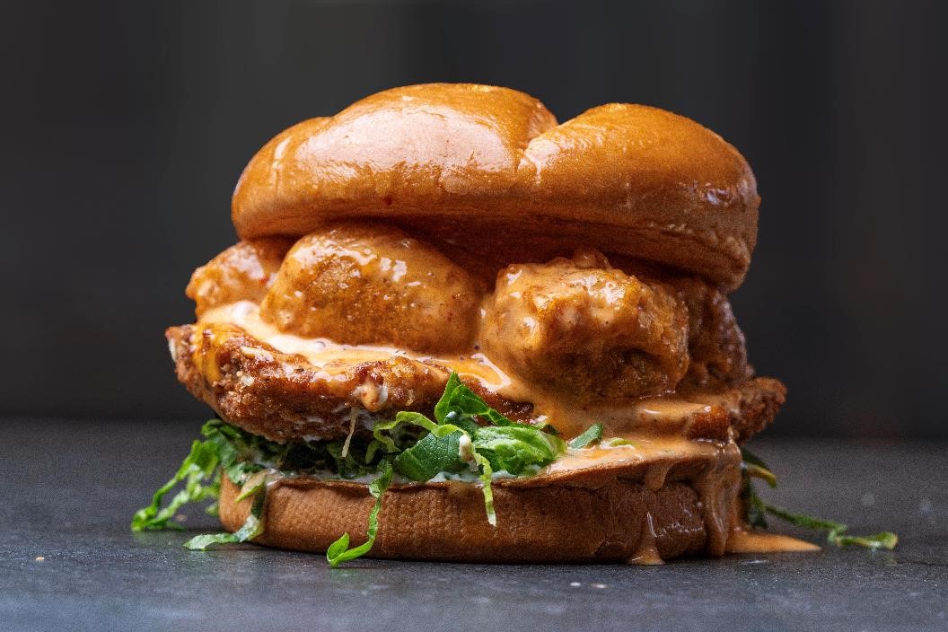 Fried Chicken Breast – Dynamite Chicken Bites – Lettuce – Garlic Mayo Sauce. Served With Fries